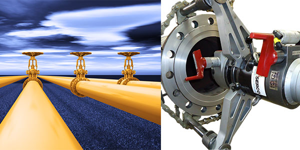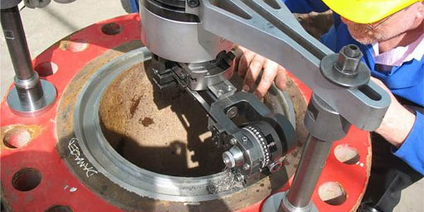 Possessing an axial and a radial movement, SERCO TU portable lathe machines are designed for high-precision machining on flanges and valves. Like the whole range of SERCO machines, it uses an outside clamping system, surrounding the surface to be machined. With this type of clamping, associated with the axial movement of the TU machines, boring operations can be carried out inside the valves.