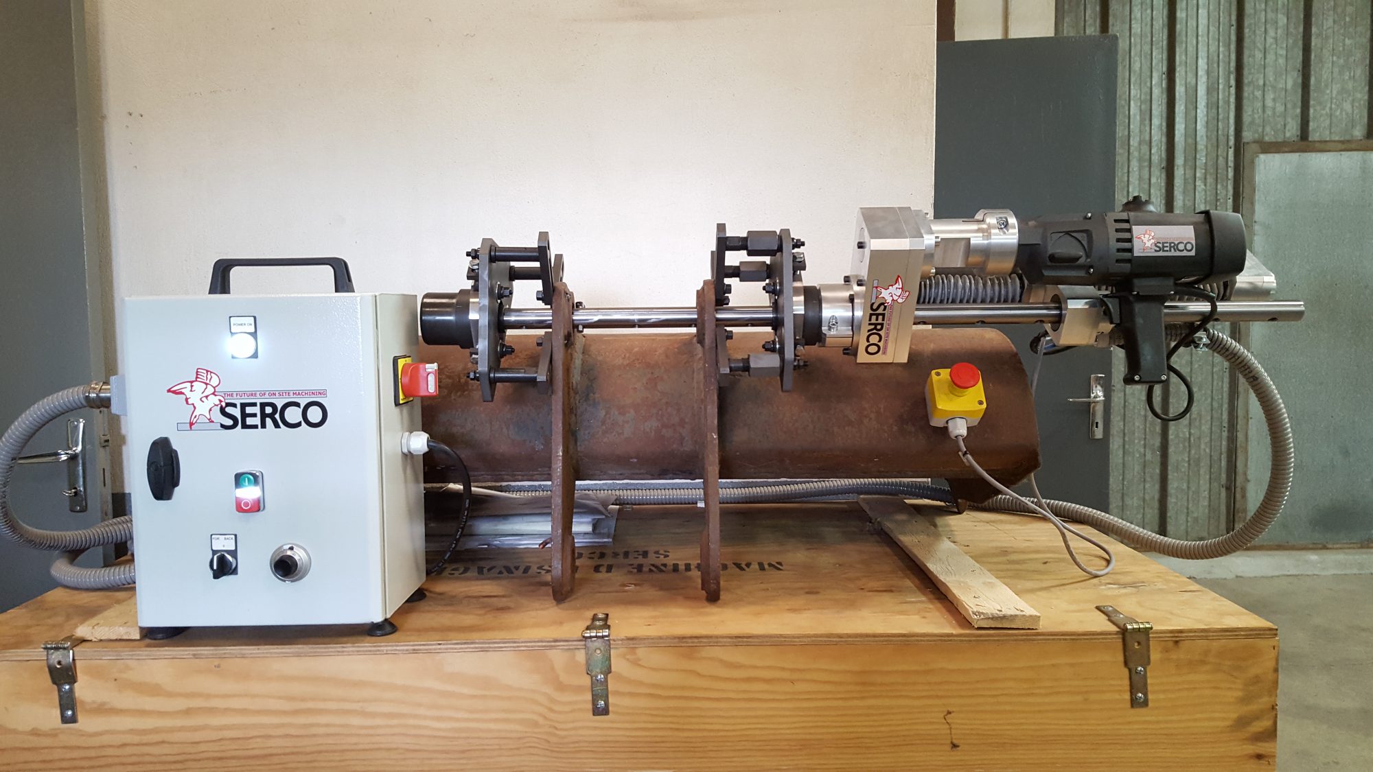 The SERCO boring bar is equipped with two identical centering cones to fit it perfectly in the bore. The machine can be set up easily and rapidly.