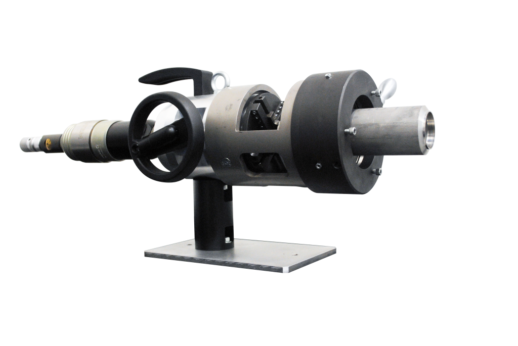 The tool-holder plate is easily removable and thus allows the operator to save time once the tool blocks have been adjusted by exchanging the whole plate. The SE-NG machines are available with either pneumatic or electric (220 V or 110 V) drives. It clamps to the tubes and pipes by means of a heavy clamping collet and thus provides a chatterfree accurate finish.